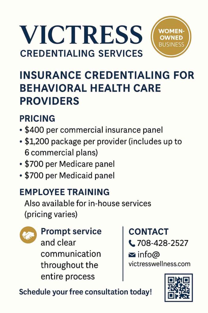 At Victress, A Wellness Center for Women, we understand that navigating insurance credentialing for mental health providers across the U.S. can be complicated, time-consuming, and stressful. Whether you’re a licensed therapist, social worker, psychologist, or psychiatric nurse practitioner (PMHNP), getting in-network with insurance companies is essential to growing your practice and helping more clients-anywhere in the country.